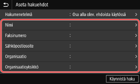 Valitse [Hakumenetelmä] ja valitse hakuehdot.