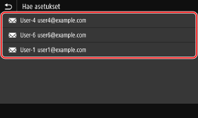 Voit määrittää aiemmin käytettyjä kohteita avaamalla lähetystyölokin ohjauspaneelin skannaus- tai faksausnäytöstä. Voit käyttää myös datan lähettämiseen käytettyjä skannausasetuksia yhdessä kohteiden kanssa.