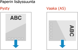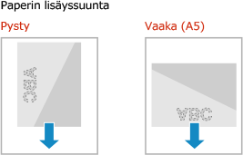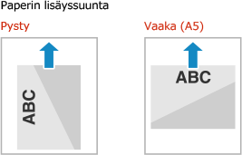 Oletusarvoisesti lisättävän paperin suunta ja tulostettava puoli vaihtelevan sen mukaan, tulostetaanko yhdelle vai molemmille puolille.