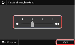 Säädä äänenvoimakkuutta vetämällä liukusäädintä vasemmalle tai oikealle ja paina [Käytä].