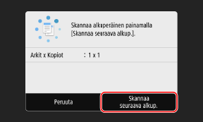 Kun [Skannaa seuraava alkup.] tulee esiin, aseta seuraava passi valotuslasille ja paina [Skannaa seuraava alkup.].