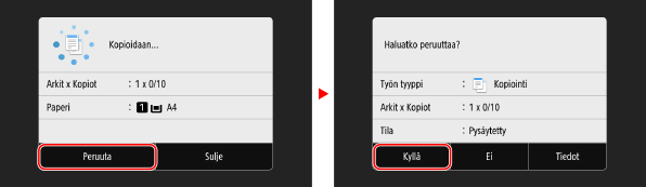 Voit peruuttaa kopiointitoiminnon noudattamalla näytössä näkyviä ohjeita.