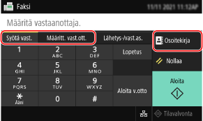 Määritä kohde [Syötä vast.]-välilehdessä, [Määritt. vast.ott.]-välilehdessä tai kohdassa [Osoitekirja].