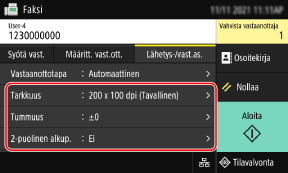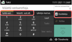Määritä kohde [Syötä vast.]-välilehdessä, [Määritt. vast.ott.]-välilehdessä tai kohdassa [Osoitekirja].