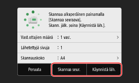 Jos haluat skannata lisää alkuperäisiä, aseta ne valotuslasille ja paina [Skannaa seur.].