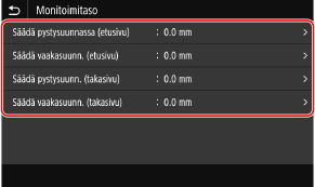 Määritä säätöleveys valitsemalla positiivinen arvo alaspäin siirtämiseksi paperilla tai negatiivinen arvo ylöspäin siirtämiseksi paperilla.