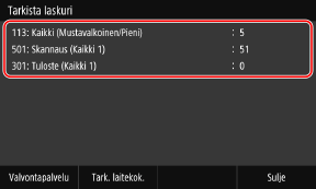Paina ohjauspaneelin [Koti]-näytössä [Tarkista laskuri].
