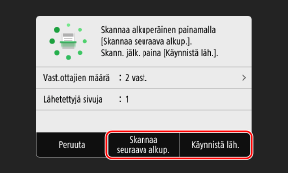 Jos haluat jatkaa alkuperäisten skannaamista, aseta ne valotuslasille ja paina [Skannaa seuraava alkup.].