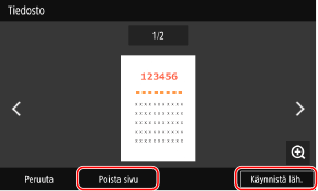 Jos et halua lähettää jotakin sivua, avaa se ja paina [Poista sivu].