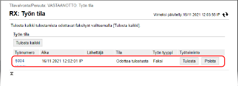 Napsauta [VASTAANOTTO] -kohdassa [Työn tila].