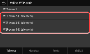 3 | Valitse salausavain, jota ei ole rekisteröity, ja paina [Tallenna]. ![]() Salausavaimen syöttönäyttö tulee näkyviin. |