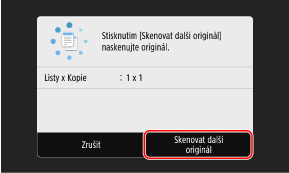 Když se zobrazí výzva [Skenovat další originál], umístěte na skleněnou desku další pas a stiskněte tlačítko [Skenovat další originál].