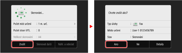 Odesílání faxu lze zrušit podle pokynů na obrazovce.