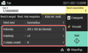 A [Küld./vét. beáll.] lapon konfigurálja az eredeti dokumentum beolvasási beállításait. A faxon küldött eredeti dokumentumok beolvasására vonatkozó beállítások