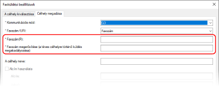 Amikor megadható a [Faxszám megerősítése (a téves célhelyre történő küldés megakadályozása)] lehetőség, adja meg ugyanazt a faxszámot.