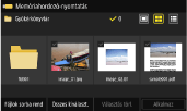 Az összes megjelenített fájl kiválasztásához válassza ki az [Összes kiválaszt.] lehetőséget a képernyő alsó részén. Ha az adathordozó PDF- és képfájlokat (JPEG- vagy TIFF-fájlokat) is tartalmaz, akkor megjelenik a fájltípus kiválasztására szolgáló képernyő. Válassza ki a képernyőn a nyomtatni kívánt fájl típusát.