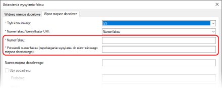 Gdy wprowadzony może być [Potwierdź numer faksu (zapobieganie wysyłaniu do niewłaściwego miejsca docelowego)], wprowadź ten sam numer faksu.