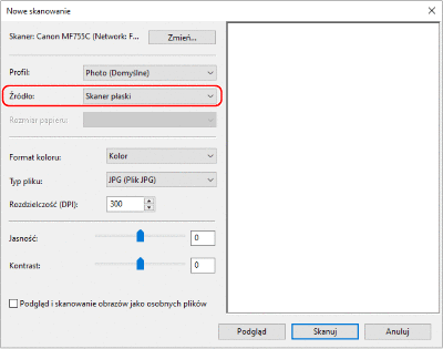 Aby zobaczyć podgląd zeskanowanych danych, kliknij [Podgląd].
