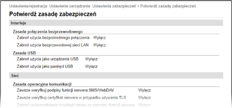 Elementy zasad zabezpieczeń i ich użycie możesz sprawdzić w zdalnym interfejsie użytkownika na ekranie [Potwierdź zasadę zabezpieczeń].
