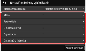 Vyberte položku [Metóda vyhľadávania] a zvoľte podmienky vyhľadávania.
