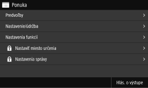 ] na ovládacom paneli. Predvolene sa obrazovka [Domov] zobrazí po zapnutí napájania a ihneď po zatvorení obrazovky spúšťania a po prihlásení. Obrazovka [Domov]