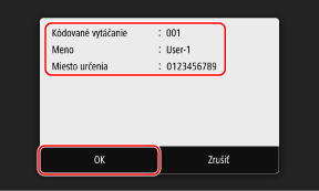 Pri zadávaní miest určenia na obrazovke skenovania alebo faxovania môžete okrem použitia zoznamu miest určenia zadať aj číslo kódovanej voľby.