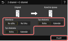 Nastavte orientáciu a typ otvárania, potom stlačte tlačidlo [Použiť].