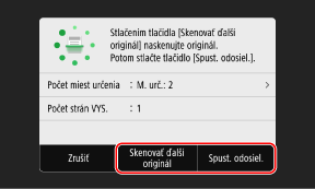 Ak chcete pokračovať v skenovaní originálov, položte ich na predlohové sklo a stlačte [Skenovať ďalší originál].