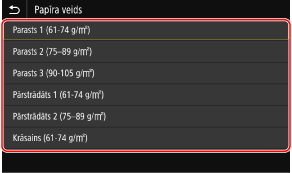 Varat mainīt ekrānā parādīto papīra formātu 1. darbības laikā. Neizmantoto papīra formātu paslēpšana