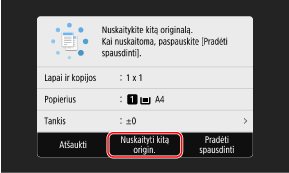 Padėjus originalą ant ekspozicinio stiklo ir atlikus dvipusį kopijavimą arba „N viename“, bus parodytas kito originalo nuskaitymo ekranas.
