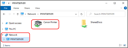 Valige valikus [Võrk] prindiserver, kus tuleks ühisprinterit kuvada.