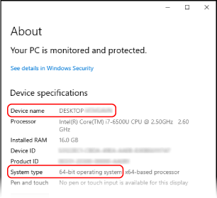 Vaadake jaotises [Seadme tehnilised andmed]arvuti nime ja operatsioonisüsteemi versiooni.