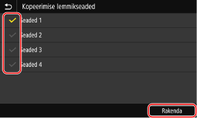 Märkige nende sätete märkeruudud, mille tahate otsetee nupuks määrata, ja vajutage [Rakenda].