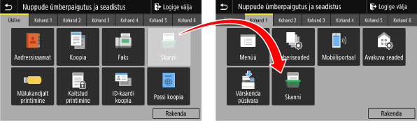 Nuppe saab [Avamenüü] kuval ümber paigutada ja teistele vahekaartidele liigutada.