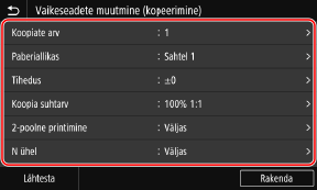 Skannimise, kopeerimise ja muude kuvatud funktsioonide vaikesätteid saate muuta juhtpaneeli abil.