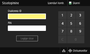 Kui osakonna ID haldus on seadistatud, kuvatakse järgmine sisselogimiskuva. Sisselogimiseks sisestage osakonna ID. Kui PIN on seadistatud, sisestage see PIN-kood.