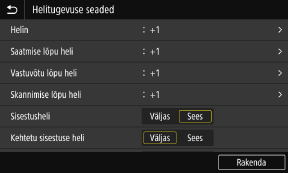 [Helin], [Saatmise lõpu heli], [Vastuvõtu lõpu heli], [Skannimise lõpu heli] (Faksifunktsioonita mudelitel)