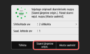Täiendavate originaalide skannimiseks asetage need dokumendiklaasile ja vajutage [Skanni järgmine origin.].