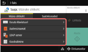 Sihtkohtade määramineKoopiate ja varukoopiate sihtkohad saate määrata funktsiooniga [Aadressiraamat] või [Koodvalimine].