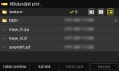 Kõigi kuvatud failide valimiseks vajutage kuva allosas [Vali kõik]. Kui mäluseadmes on nii PDF- kui ka pildifaile (JPEG või TIFF), avatakse failitüübi valimise kuva. Valige sellel kuval failitüüp, mida soovite printida.
