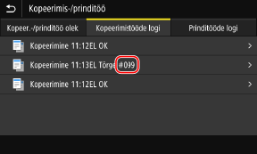 Kui ei saa printida või ei saa skannitud andmeid või faksi saate või vastu võtta või tekib muu viga, kuvatakse aruandes või tööde logis veakood (kolmekohaline arv märgi # järel).