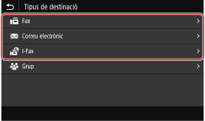 Podeu utilitzar els següents mètodes per a registrar adreces de correu electrònic (correu electrònic, I-Fax) i números de fax: Registreu les destinacions introduint directament les seves dades.