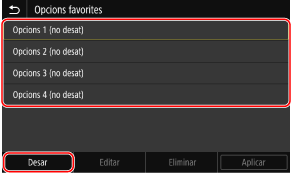 La pantalla [Opcions favorites] es mostra a la pantalla.