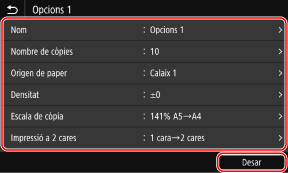 Si seleccioneu [No], les opcions preferides es registren però no s'afegeix un botó d'accés directe. Podeu afegir un botó d'accés directe a la pantalla [Inici] més endavant.