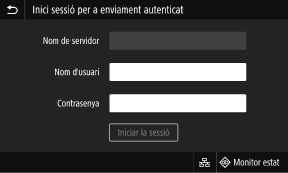 Quan configureu l'enviament autenticat (autenticació de servidor LDAP), es mostra la pantalla d'inici de sessió per a l'enviament autenticat en realitzar operacions de lectura i fax. Introduïu el nom d'usuari i la contrasenya gestionats amb el servidor LDAP per a iniciar la sessió.