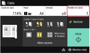 Premeu [Nombre de còpies], utilitzeu les tecles numèriques per introduir el nombre de còpies i premeu [Tancar].