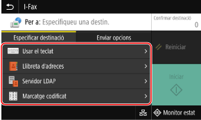 Utilitzeu la [Llibreta d'adreces] o el [Marcatge codificat] per especificar les destinacions de a/c i c/o.
