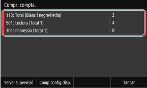 Premeu [Comp.config.disp.] per comprovar la configuració d'opcions de l'equip.