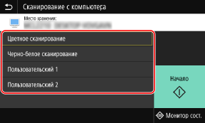 Формат отсканированных данных, место сохранения на компьютере и другие параметры настраиваются для каждого параметра сканирования. Оригинал сканируется в соответствии с выбранным параметром сканирования.