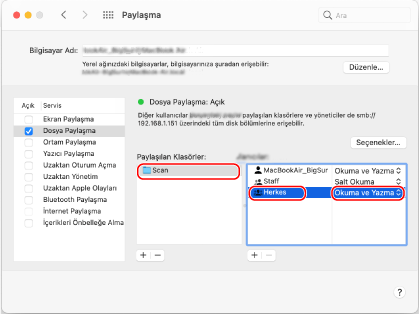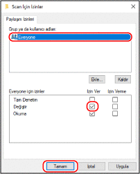 [Kullanıcılar] kısmında [Herkes] [Okuma ve Yazma] öğelerini seçin.